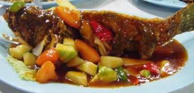 Sweet & Sour Deepfried Fish.. freshly picked and killed! Aww…