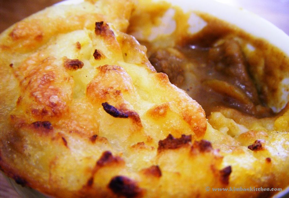 Mix the potatoes with margarine, milk, salt and pepper to form a smooth mash. Divide leftover curry into ramekins and top with the mashed potatoes. Sprinkle some shredded cheese on top of the mash and cook in pre-heated oven at 190C for approx. 10 minutes. So simple! Of course, that’s assuming you’ve already cooked the curry from the night before of course, lol.