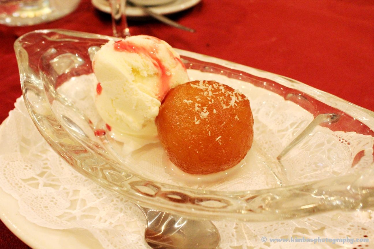 Finally, we were served our dessert the “Gulab Jamun” with Ice Cream. It is made of a dough consisting mainly of milk solids (often including double cream) and flour flavored with coconut and rose syrup. It was nice and warm to contrast with the ice cream so we quite enjoyed it.