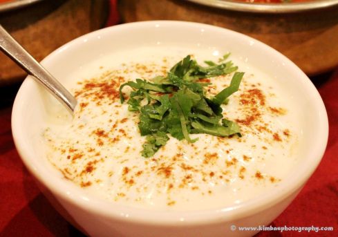 As soon as we were ready, our waiters brought out all of our main courses. We had some Naan bread, Rice, Raita (Indian condiment / sauce which is yoghurt based), Chicken Makhani, Lamb Rogan Josh, Dal Makhani and Aloo Mutter.