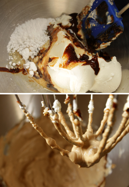 6. To make the filling, dissolve the instant coffee in the boiling water. Set aside to cool. Beat the coffee, mascarpone and icing sugar until just combined. Be careful not to over mix, or the mascarpone will split.