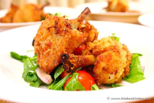 The next day, coat the marinated chicken in breadcrumbs and deep fry in hot peanut oil for a few minutes, just until it is browning. Place the fried chicken on baking tray and cook in oven preheated at 180C for approx. 10-15 minutes.