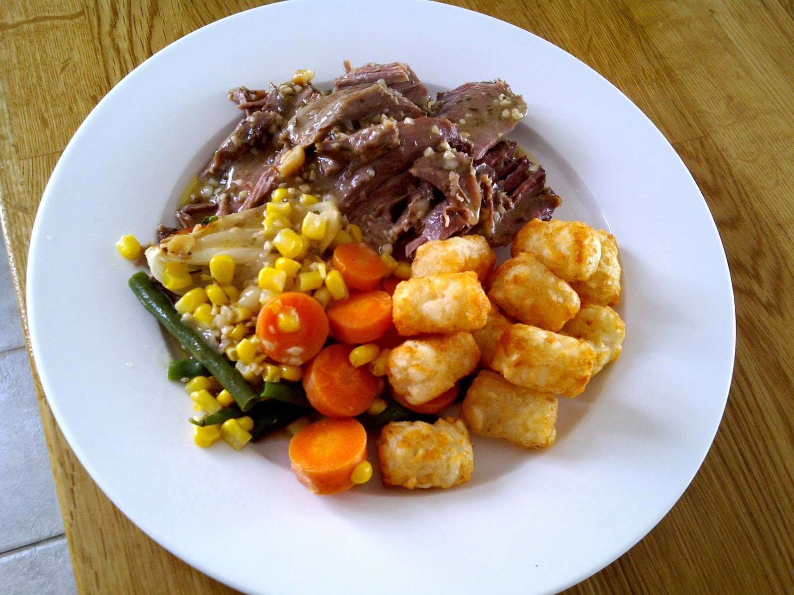Hubby and I had leftover Roast Lamb for both lunch and dinner today! This was a pic I took with my BlackBerry… I steamed some veggies and made some Potato Gems to go with it.