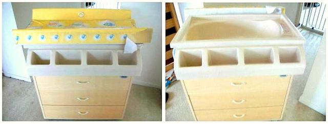 | (Photo by eBay seller – will post final photos of nursery when I’m done!) Change Table (top mat needs to be replaced + Bath + Extra Drawers $41 |