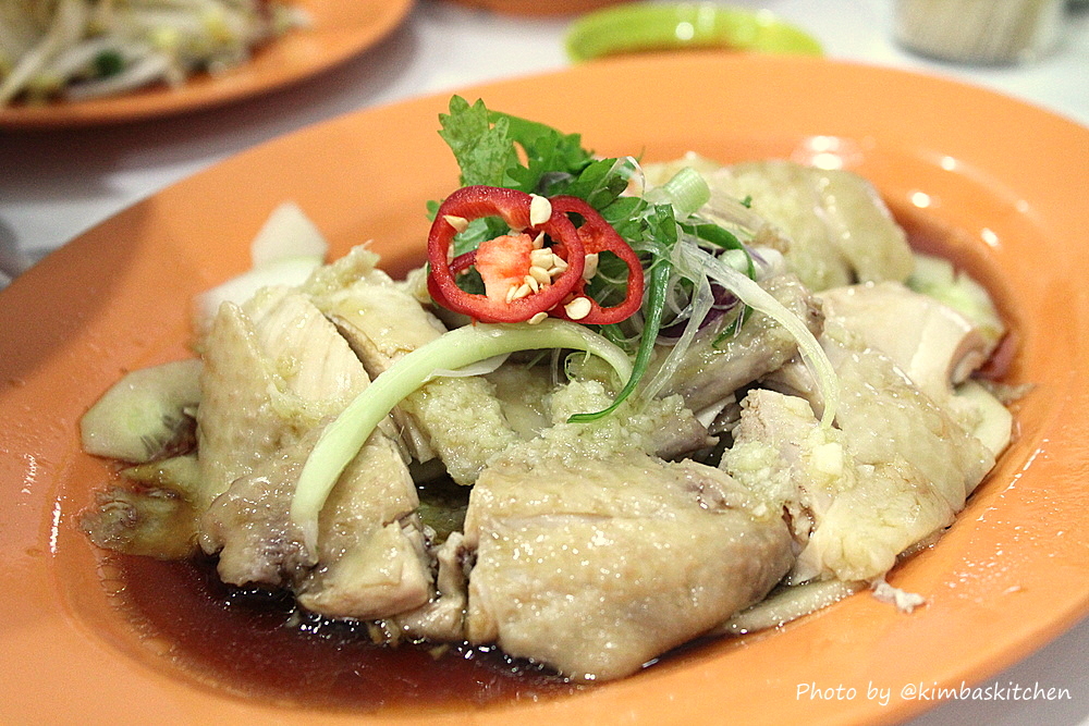 We started our meal with a plate of freshly cooked bean shoots aka “taugeh”. The bean shoots were nice and fat, and crunchy, and beautifully cooked to retain its firmness without going too soggy. This simple dish cooked in light soy sauce, with some chilli and spring onions, is the perfect side dish (along with the plain soup) for the steamed chicken we’re about to be served…