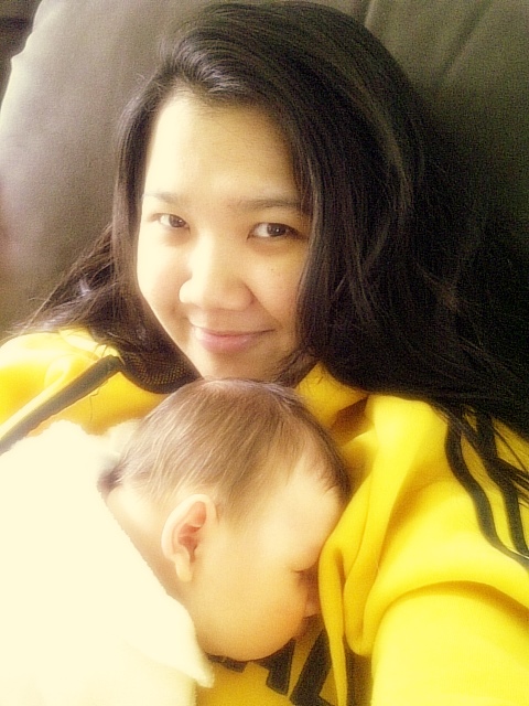 Also, I used to complain about how Micah only treats me as a “milk machine” and doesn’t really let me hold him and cuddle and snuggle him without trying to latch on to any part of my skin like a vampire, searching for food… well not anymore! As long as he is fully content, I can now happily hold him and snuggle with him without him “protesting”… until he eventually falls asleep in my arms (like the photo above). Aaahhhh… such precious moments π