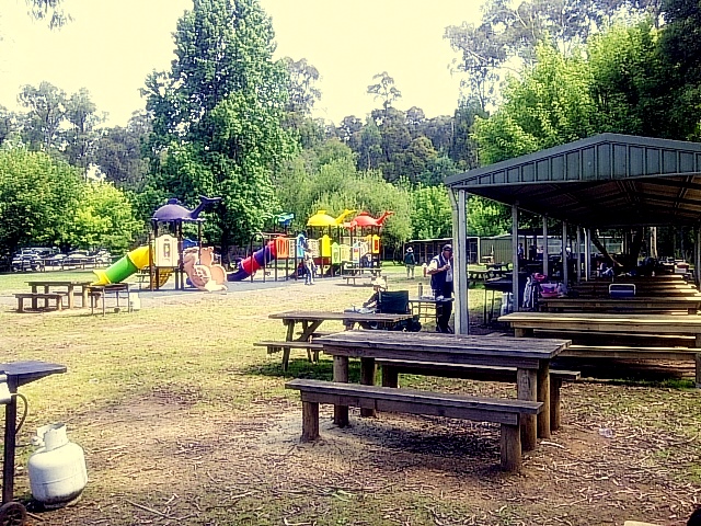 | Playground and BBQ Area at the Rainbow Trout Farm |