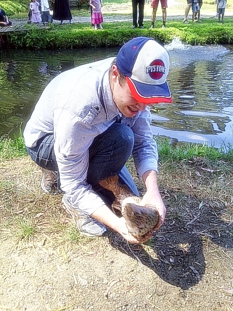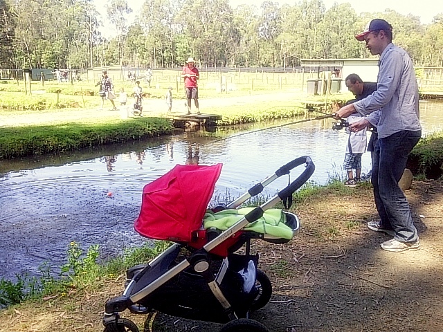 We started off by fishing in the “big pond” where it actually takes patience and time to fish and catch something. Fortunately, hubby cast his first line and straightaway caught a big trout! After that though, the boys probably fished in the big pond for another hour, maybe even close to two hours. So I got myself settled under a tree sitting on a camping chair, and discreetly breastfed Micah whilst enjoying the lovely weather and peaceful outdoor surroundings.