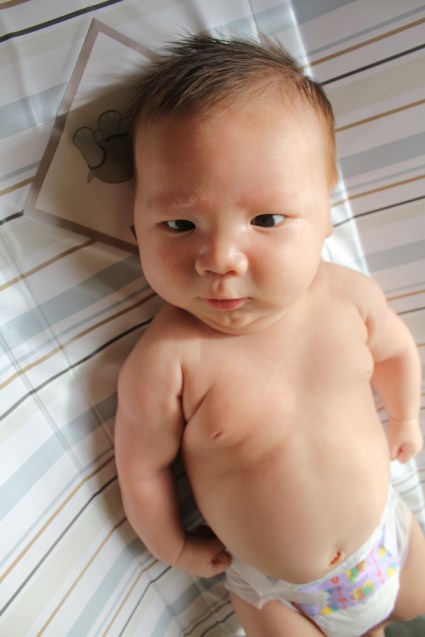 So far, hubby and I seem to have done the right thing. We give him regular baths and wipe him down with a wet cloth whenever he seems hot and sweaty. We don’t put any clothes on him (other than his nappy of course) when he’s at home and the weather is hot. We should probably give him more time completely nude without his nappy. He feeds a lot more regularly now and I let him feed more regularly to avoid him getting dehydrated because of the weather and the air conditioning.