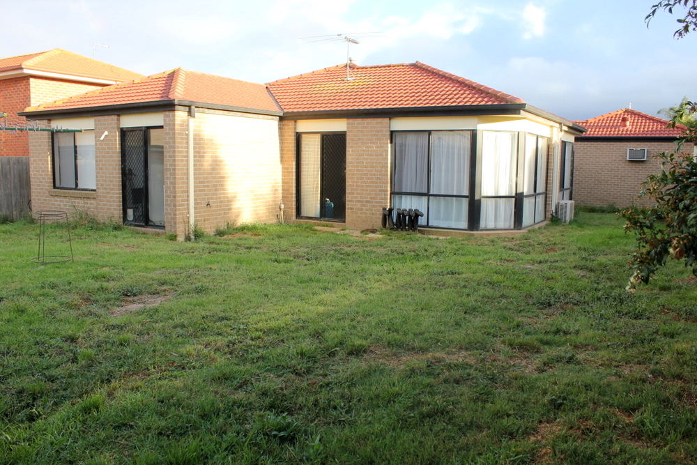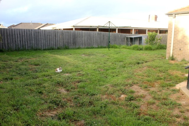 | “Before” pic – our backyard needs to be leveled out and have some new and nice grass. We also have weeds growing in between the grass at the moment. |
