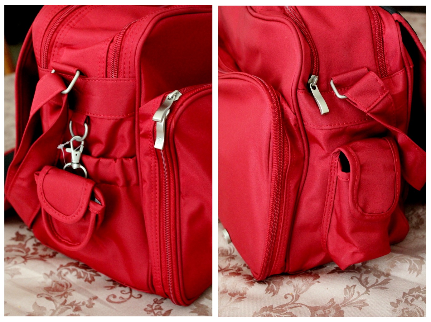 I also bought a nappy bag today. It was crazy how I found “hidden energy” just at the mention of “30% Discount” and “Target” and “Red Nappy Bag”… you see, I’ve been feeling tired and sleepy all day and have been snoozing on and off with Micah right up to lunchtime. But when my dear friend Leah texted me those 3 magic words and I looked it up online, I knew I wanted to get this nappy bag. ONLY $35 from Target after the discount! Soooo happy I finally have my own nappy bag. The bag I’ve been using is an old second hand bag and whilst it was functional and served its purpose well, it wasn’t ME. It needed more pockets so I can be more organised and not have everything thrown into one big space, making things hard to find. It needed to be RED to match Micah’s pram. It needed to be COOL because I am a bag person. Obsessed with bags. So very happy with my purchase today 🙂
