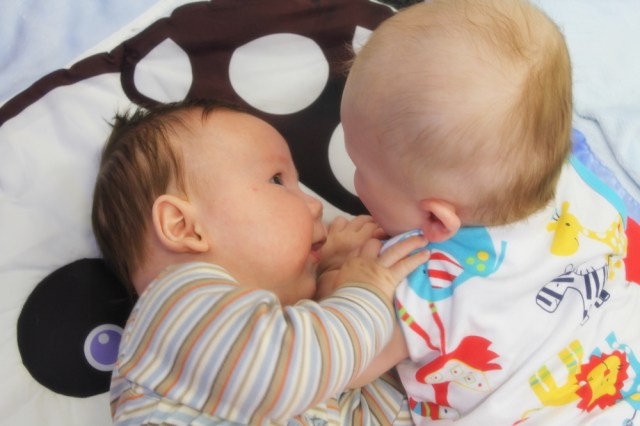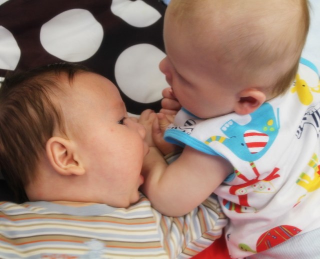 | Cooper: Look I can roll over! Micah: Look I can push you away! |