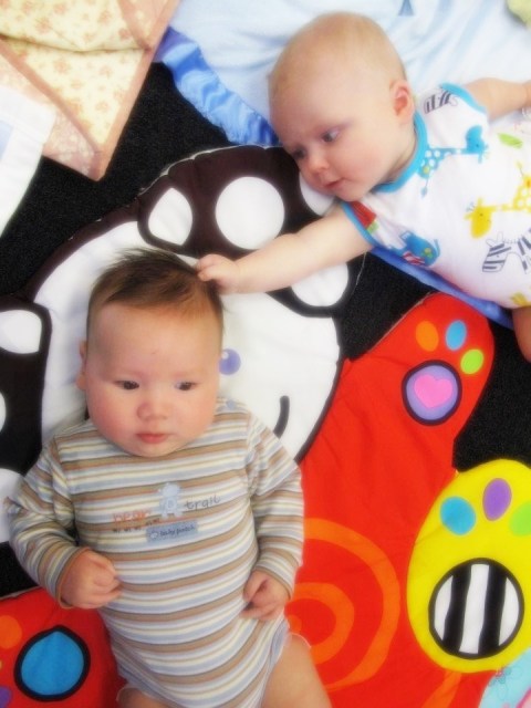 At Mums Group this week we talked about Starting Solids, but mostly we let our babies play with each other and took lots of photos! Here are some funny photos of Cooper and Micah:
