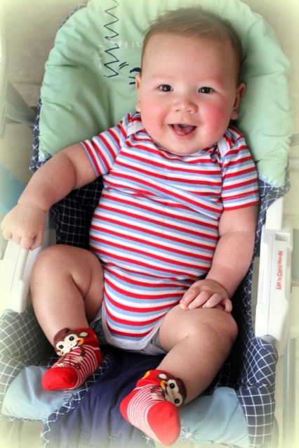 Not much to write about this week really. Micah’s sleeping better this week. I went out to lunch with Mums Group today. I’m going to Leah’s baby shower this weekend so Micah will get to spend some time with his dad while I’m at the shower. I really need to get back to my diet (been eating too much junk the past week and gained 3kg! I blame Easter…) and need to get back to walking again. And I took some new photos of Micah which turned out really good.