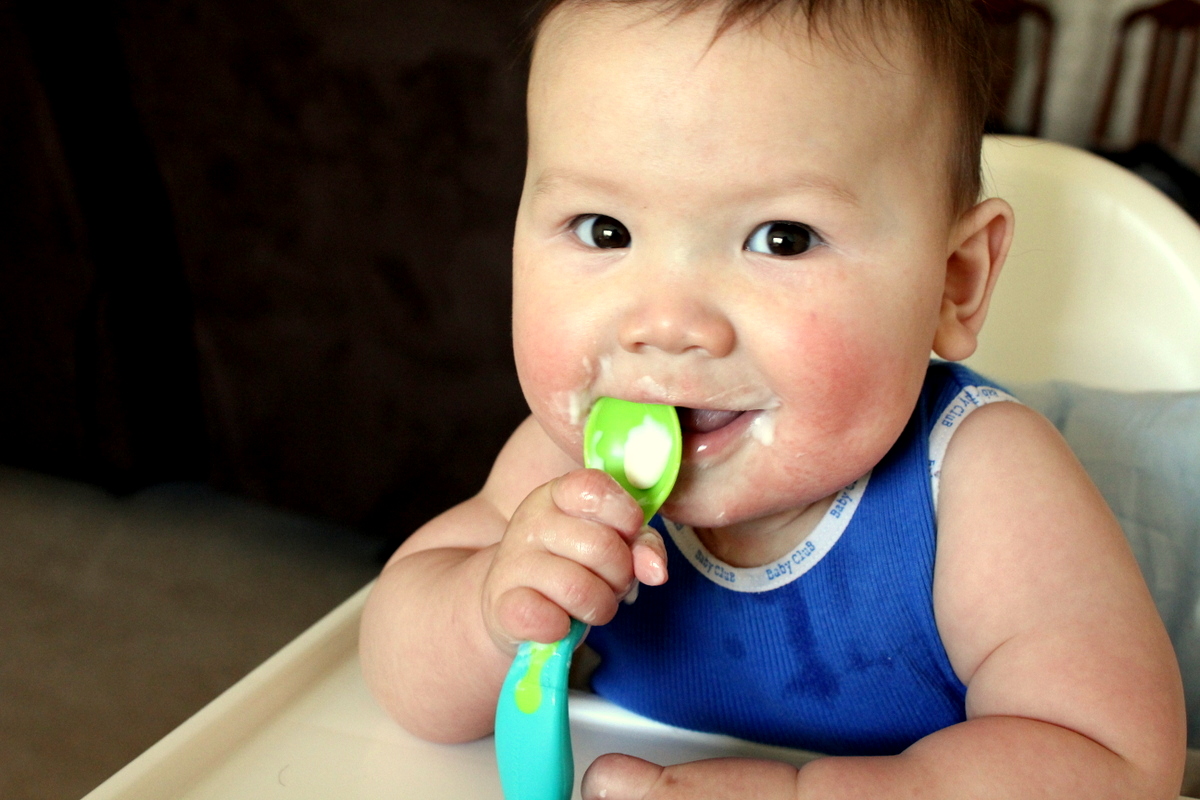 Micah had his first taste of yoghurt today and he loved it! He didn’t have much at lunch time, but when daddy came home from work and had some yoghurt as a snack before dinnertime Micah had more than what he had at lunch time! Obviously he is loving the flavours but most importantly, he loved sharing a small tub of yoghurt with his dad. Aawww… πŸ™‚