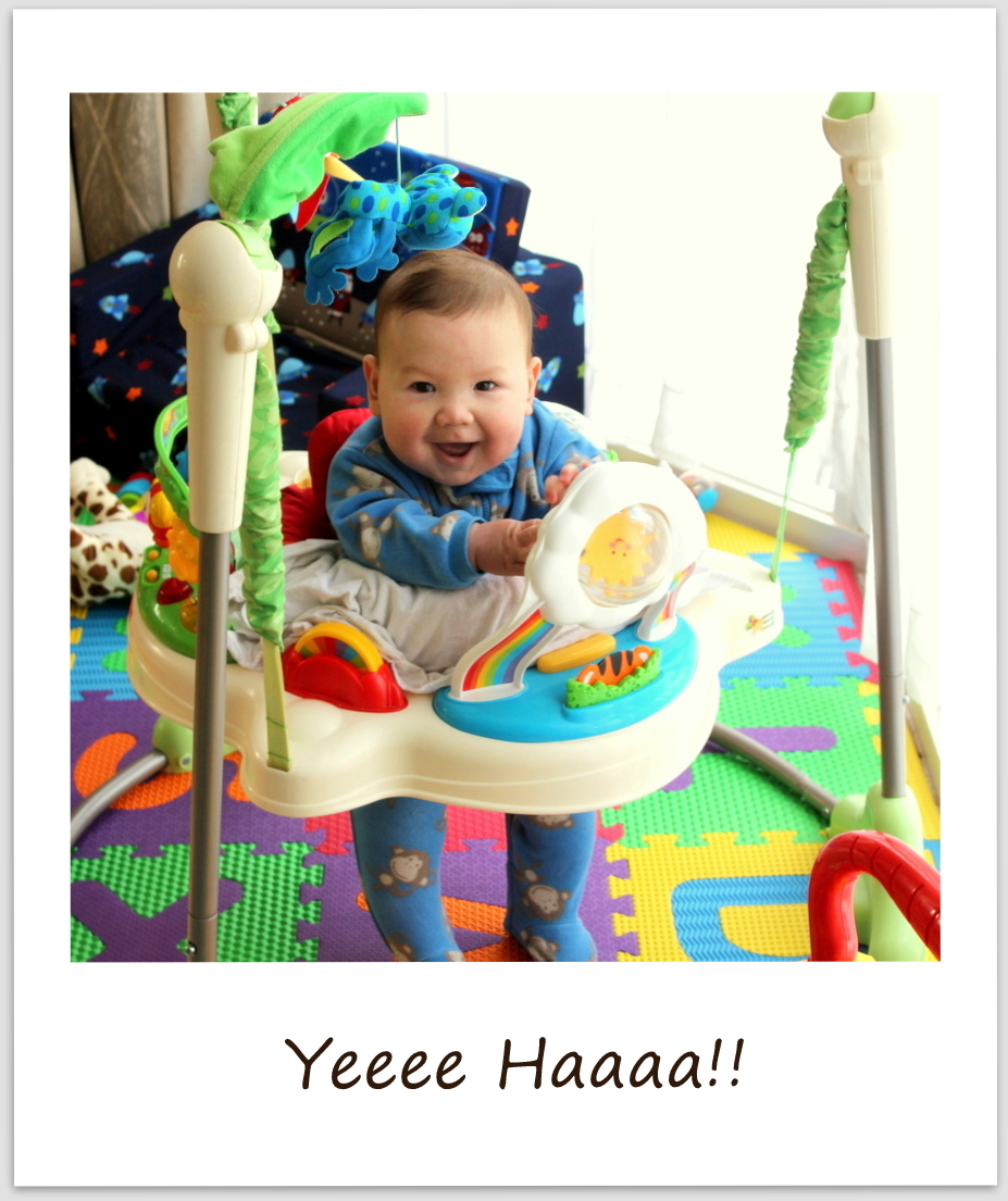 Micah got a new toy from his Aunty Hannah yesterday and he is absolutely loving it! It’s like a jolly jumper thing which makes him bounce around. He loves standing up anyway so being able to stand up AND play with things around him is like the best thing for a kid his age!