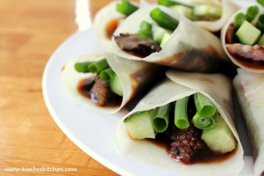 | Serving Suggestion: Peking Duck Pancakes with Cucumber, Spring Onion & Hoi Sin Sauce |
