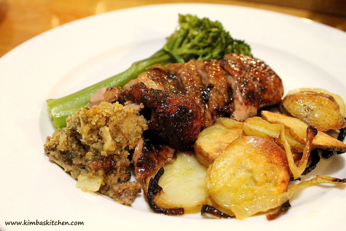 | Serving Suggestion: Roast Duck with Roast Potatoes & Onions, Steamed Brocollini |