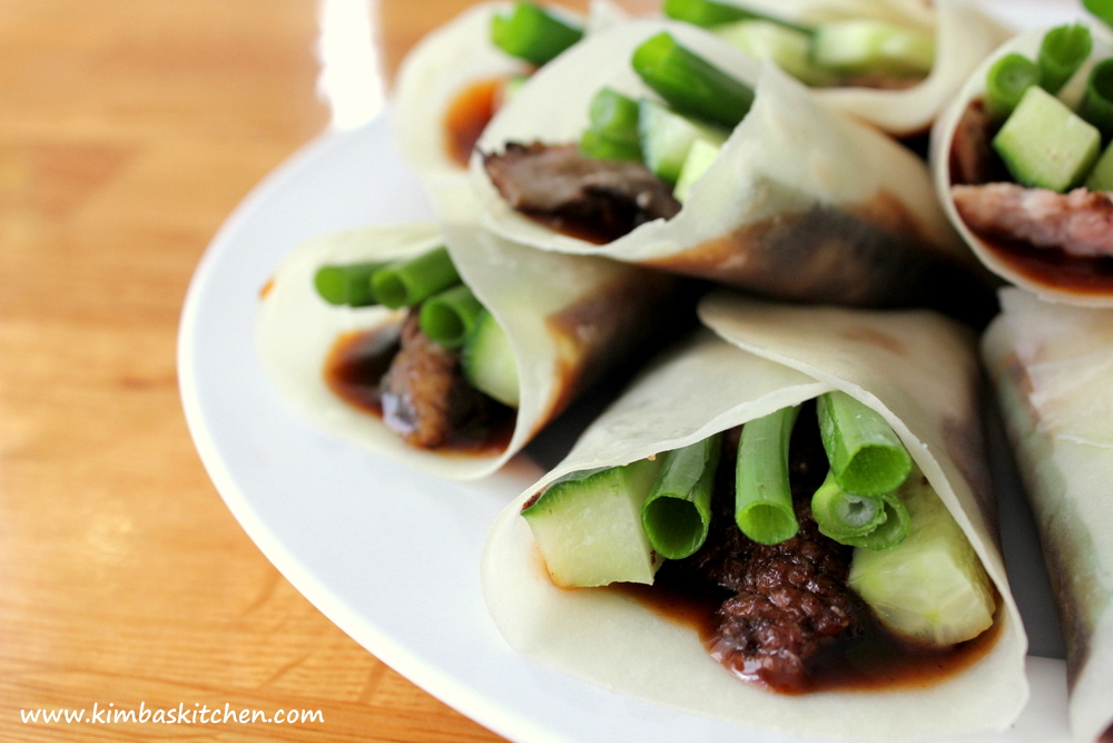 | Serving Suggestion: Peking Duck Pancakes with Cucumber, Spring Onion & Hoi Sin Sauce |