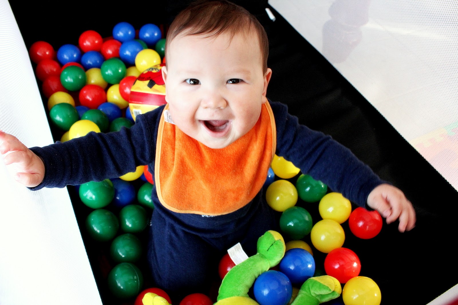So recently we discovered we could set up another place where we know he will happily play in and be safe unsupervised for a short period of time. We set up his portacot and created a ball pit. It’s pretty cool and he absolutely loves it! The portacot is very steady and no matter how crazy he climbs onto the walls of the portacot to stand up, it will not topple over and the material is fairly solid and does not look like it will tear or anything even if he puts his entire weight on it. Plus the cushion mattress (and the soft plastic balls) means that he can fall over as much as he wants in his ballpit and not get hurt. It is brilliant!