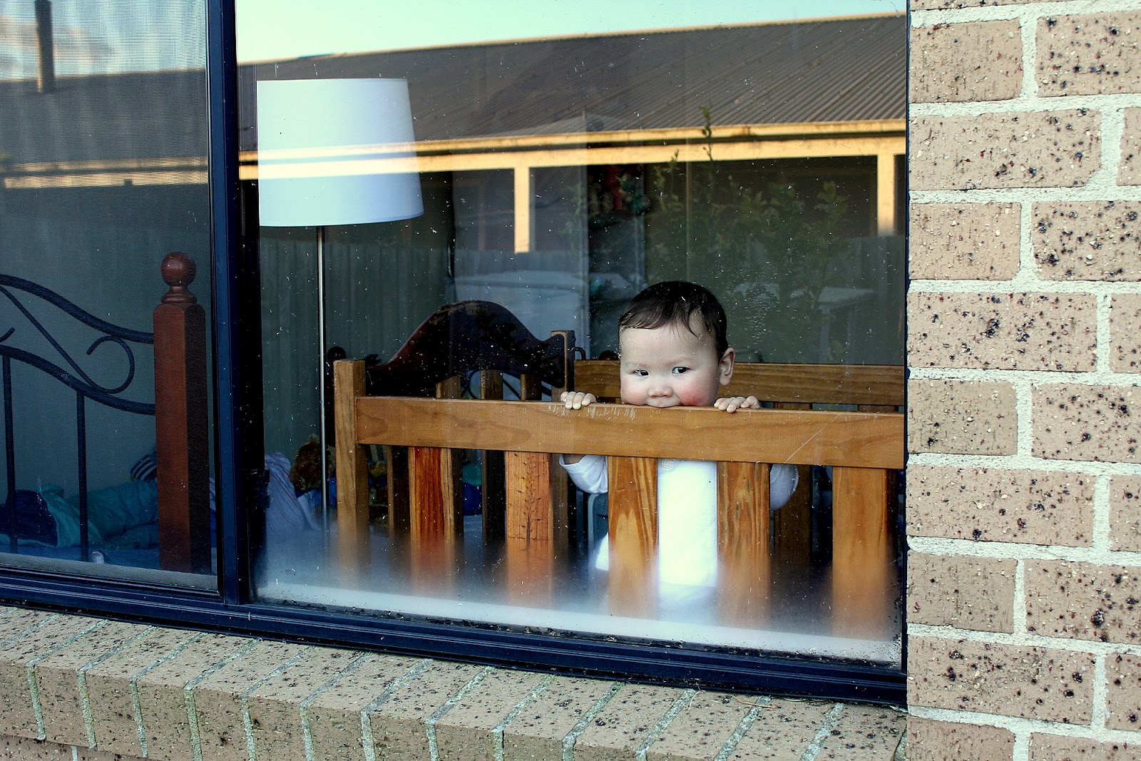 Micah looking longingly out his window at our neighbour’s kids jumping on their trampoline…