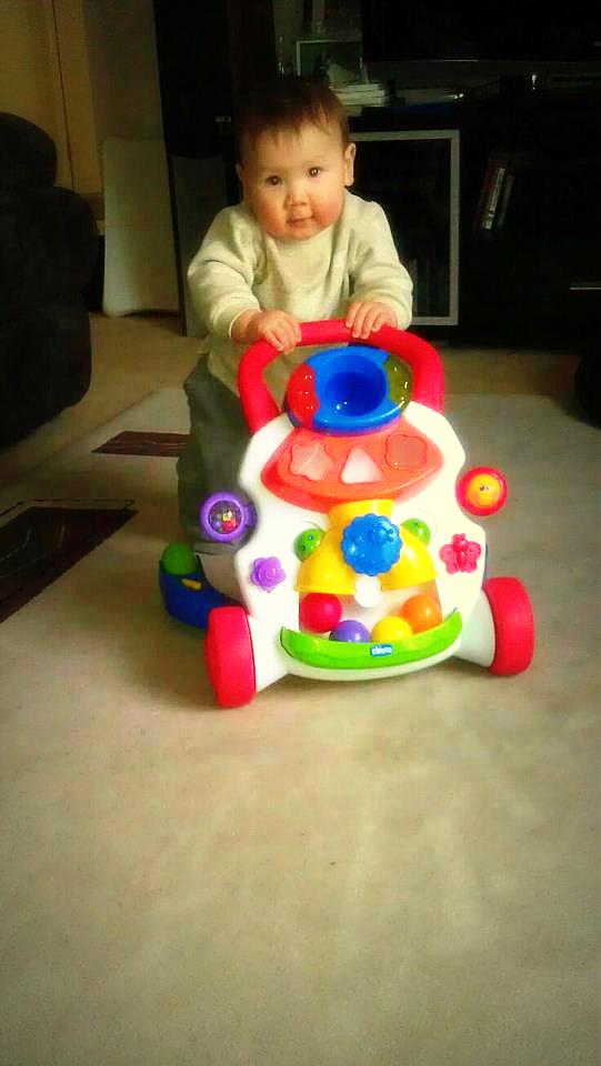 And what a little adventurer he is. He walks on his walker pretty well now (if you missed it, here’s a video of Micah walking) and crawls around his now secured play area and sits up and plays with various toys. Very independent little kid, as long as he knows I’m not far of course… and as long as he is not tired, grumpy, hungry or has a dirty nappy, lol.