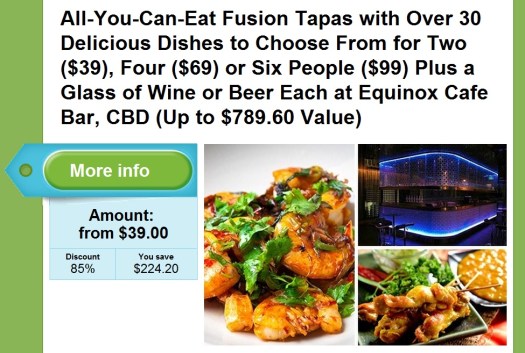 So there you go, we managed to order and eat 8 dishes altogether. For $39 plus one drink each, that is GREAT value for money so we were pretty happy. The best thing about this deal was the level of service we received from the staff at Equinox. We were served by two lovely gentlemen who were very attentive, polite and friendly. I am usually very skeptical when it comes to dining at a new restaurant using a group buying voucher, because I have had some rude experiences in the past! I don’t know why but I just shouldn’t feel less important as a customer just because I am using a voucher to dine at a significantly reduced price.