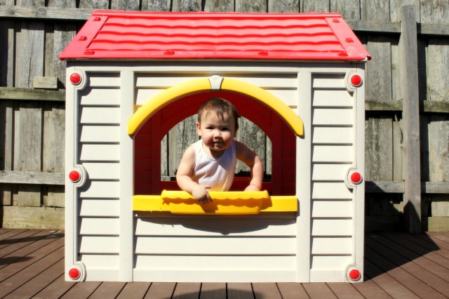 Over the weekend, hubby helped me carry the cubby house over the gate so it’s finally in our backyard, on our deck. I gave it a good hose using high pressure water and it’s almost as good as new! Micah has a new toy now, cannot wait to see him play outside the next time we have a nice day.