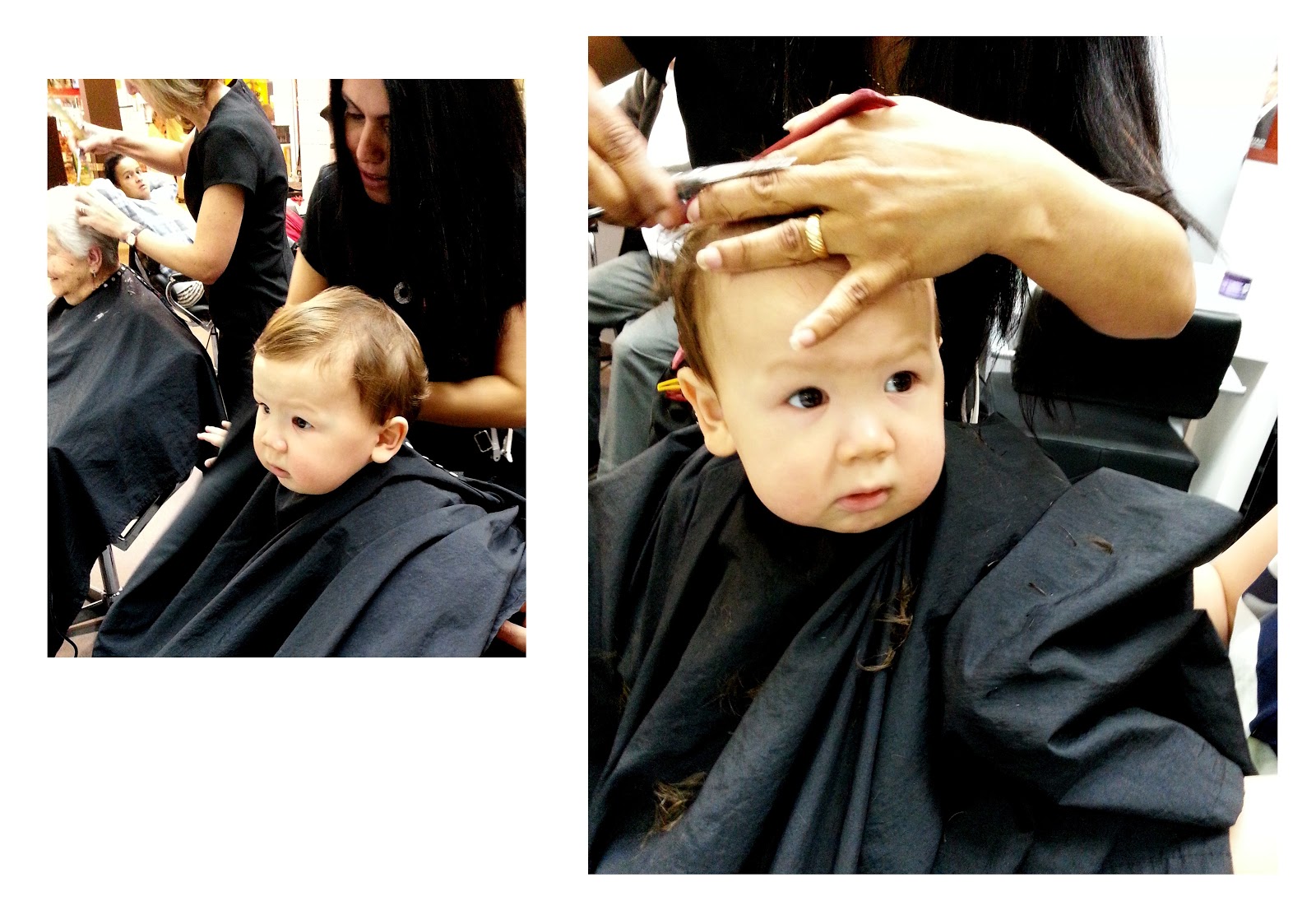 Micah had his first real haircut today. I gave him a little trim a few weeks ago but it was too hard to try and cut all of his hair because he kept reaching for the scissors. This time, I took him to a Barber Shop at Fountain Gate and paid $16.50 (whoa!) to get his hair cut. His hair was really getting out of control! Very happy with it now though, a lot neater and shorter and he looks young again, like a younger baby. He looks very handsome and cute 🙂