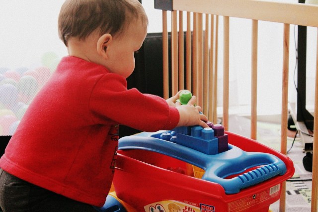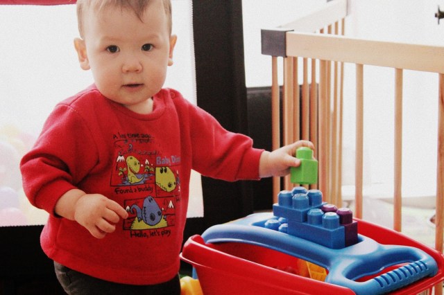 We started letting Micah play with Mega Bloks about a week ago, and already he knows how to stack. Now I just wonder if he would’ve stacked a lot sooner if we let him play with them sooner!!