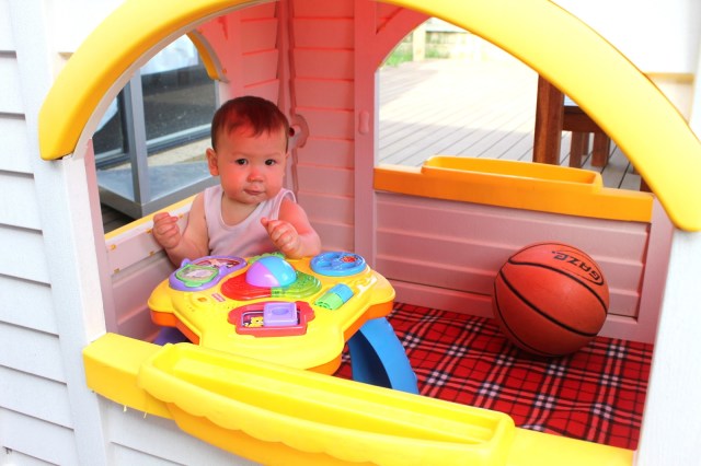 Well, summer is approaching quickly and the weather is getting warmer and warmer so Micah got to play in his cubby house a lot more these days, and he is lovin’ it!