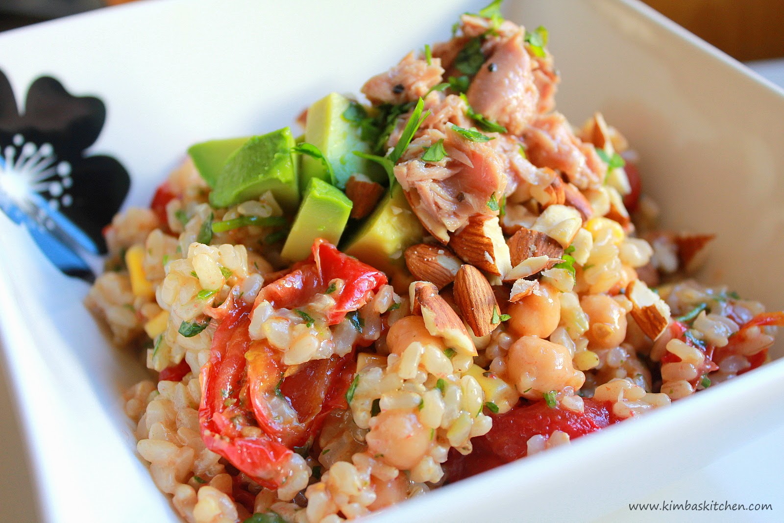 So I thought I’d share a really cool recipe for these warmer days. A friend of mine made me this brown rice salad just last week and I just fell in love with it. Not only is it tasty and nutritiously healthy, it was a filling meal on its own. Very satisfying and fulfilling. Great for lunches this coming summer!