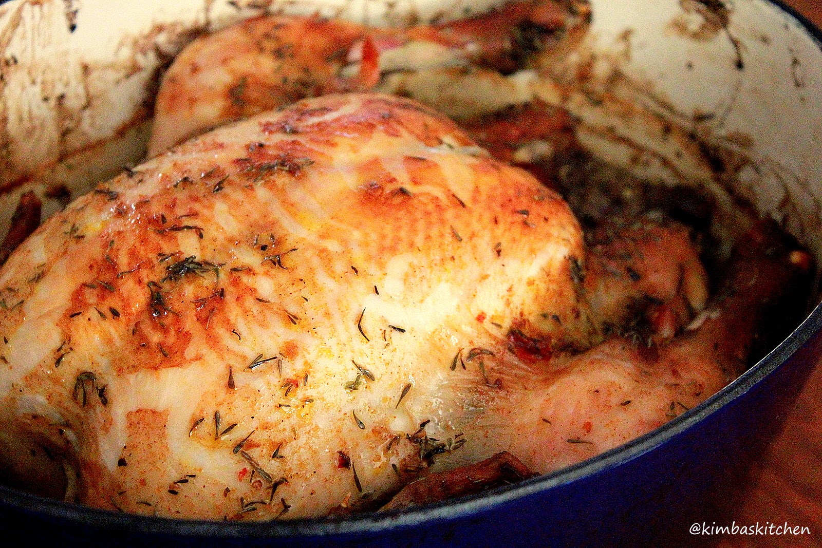 The result? Pretty darn good if you ask me. Did it satisfy my craving for chicken? It sure did! The slow roasting process meant the chicken was deliciously moist and juicy. The spices and sauces I put together resulted in a slightly spicy and quite flavoursome chicken. All the flavours and juices were retained inside the casserole dish (use a dish big enough to fit the chicken and cover with casserole dish lid).