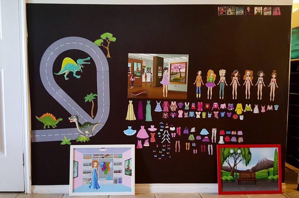 And then, we have developed a whole range of MagReceptives and activity packs that can be placed on the magnetic walls / frames. These MagReceptives are basically a magnet-attachable printable film – they are not magnetic on their own (ie they will not stick to a fridge / whiteboard) but they will stick to a magnet. They are printable, and therefore we have heaps of options when it comes to offering background scenes to go on your magnetic wall and also activity packs.