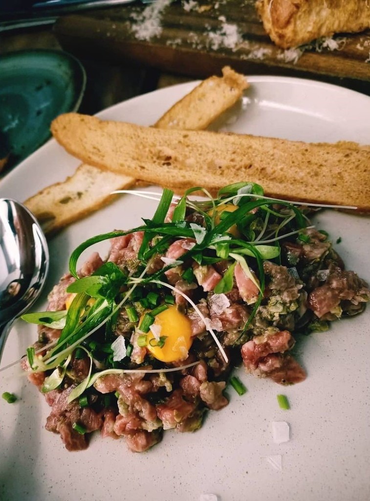We started with entrees of Garlic Bread, Wagyu Tartare and the Tasting Plate. It was just perfect. I am currently on a “calorie counting” diet, so the portions needed to be just right for me. Between the small-ish garlic bread and just a small serve of each protein, I think I did pretty good! Most importantly, I got to taste everything and they were all beautifully made and so delicious.