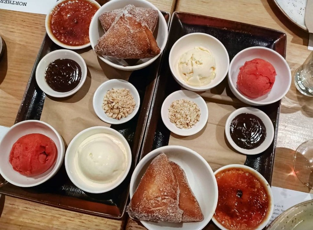 And finally, what an amazing way to finish our meal – the dessert share plate. Delicious, hot and fluffy cinnamon doughnuts, creme brulee, chocolate, hazelnut, ice cream and sorbet.. what more can you ask for?! It was a truly delightful end to our meal and then I went into food coma and simply hibernated at home for two weeks during lockdown… hehe. Now that we are out of lockdown again, I wonder, where to next?