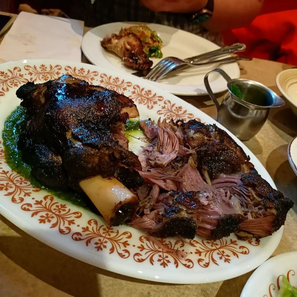 - Main: Lamb shoulder + BBQ Chicken wings with Freekeh salad + Cos and herb salad