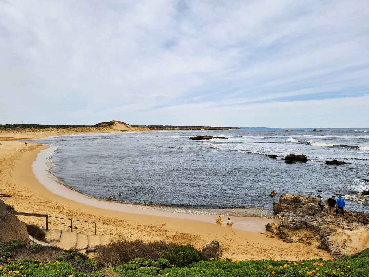 We visited at the end of September on a glorious spring day. The sun was shining, though it was a little windy at first. The breeze eventually settled, and it turned into a perfect beach day, allowing us to stroll along the sand with the dogs happily running ahead. The calmness of the setting and the warmth of the sunshine made it an unforgettable afternoon for us and our house guests, including their furry companions.