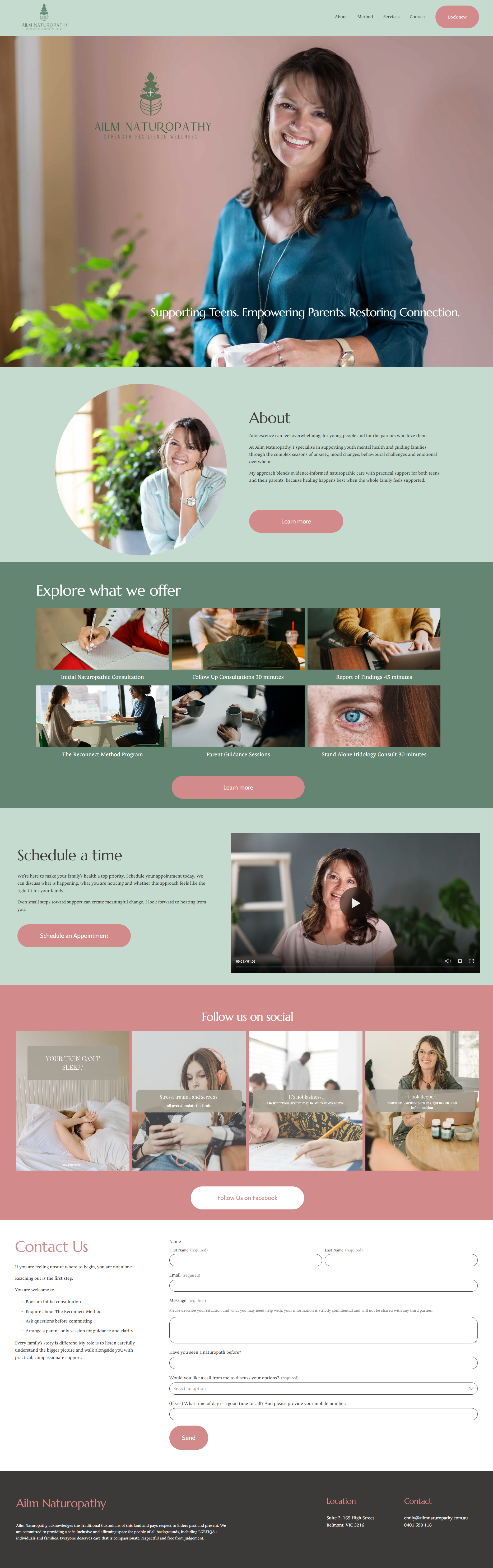 Ailm Naturopathy is run by Emily, a passionate naturopath who wanted a clean, calm online space where people could learn about her approach to health and easily book appointments.
