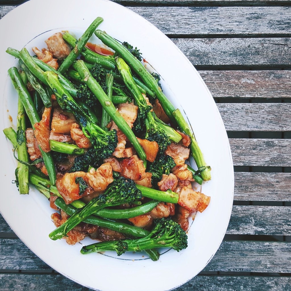 Super Quick and Easy Pork Belly with Greens Stirfry