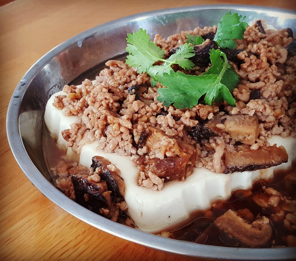 Steamed Silken Tofu with Minced Pork & Mushrooms